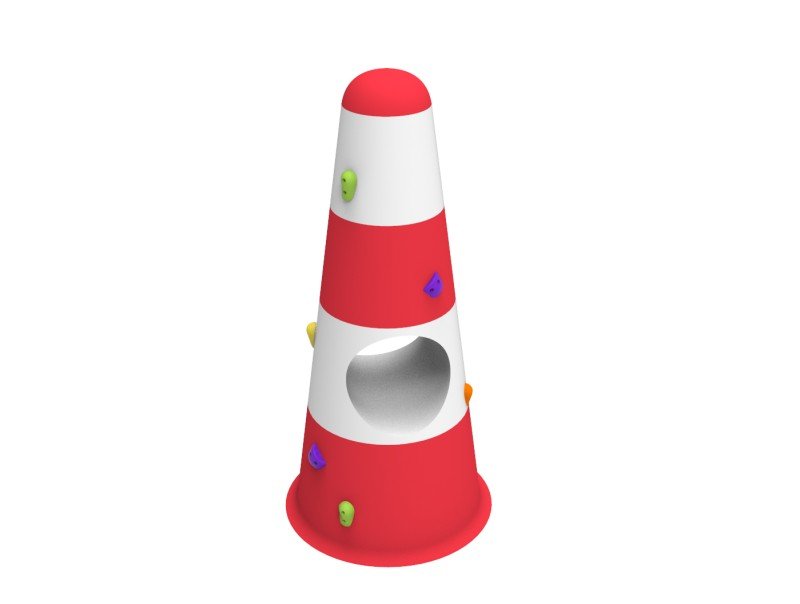 Žaidimų aikštelės dizaino elementas- švyturys. Plastikinis tunelis. Su nerūdijančio plieno tuneliu plius 350 eur plius PVM.