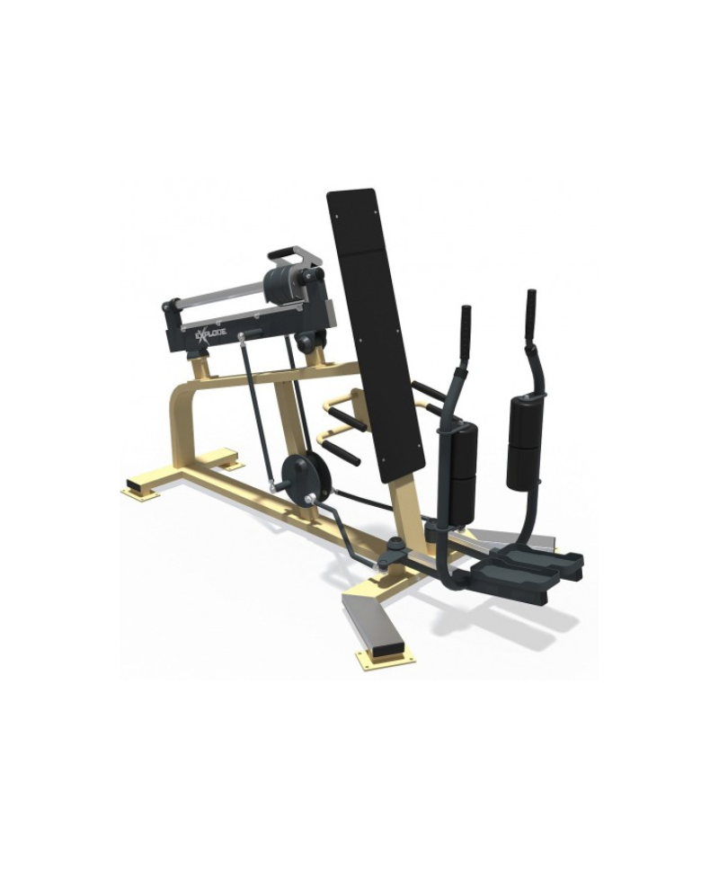 Jėgos lauko treniruoklis su 15 lygių svorio reguliavimo sistema, skirtas kojų raumenų treniravimui.