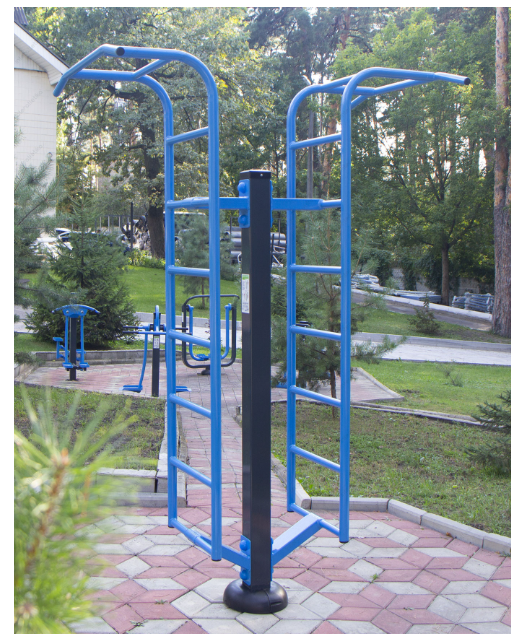 Treniruoklis pagamintas iš tvirtos metalinės konstrukcijos, padengtos cinko gruntu ir dažytos milteliniu būdu, todėl yra atsparus nepalankioms oro sąlygoms ir vandalizmui.
