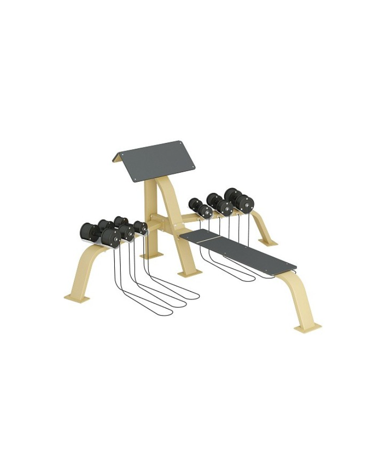 Treniruoklis su 10, 16 ir 24 kg svorio svarmenimis ir prie konstrukcijos pritvirtintais trosais, skirtas rankų raumenų stiprinimui.