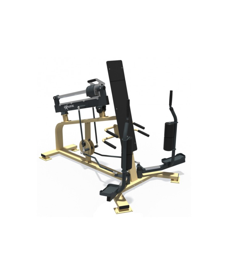 Jėgos lauko treniruoklis su 15 lygių svorio reguliavimo sistema, skirtas kojų raumenų treniravimui.