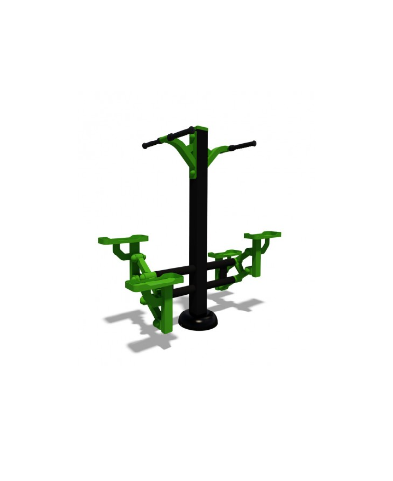 Treniruoklis pagamintas iš tvirtos metalinės konstrukcijos, padengtos cinko gruntu ir dažytos milteliniu būdu, todėl yra atsparus nepalankioms oro sąlygoms bei vandalizmui.