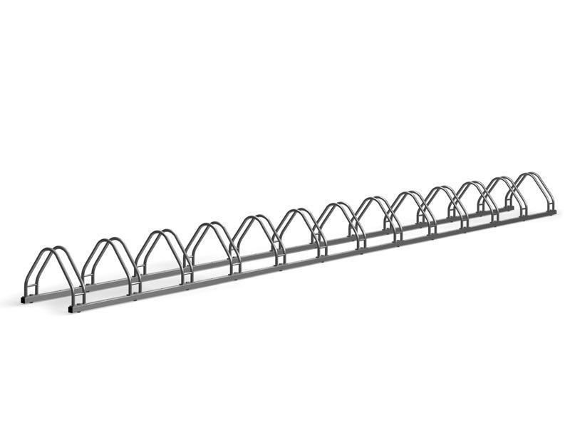 Tinka visų tipų ir dydžių dviračiams (išskyrus dviračius su diskiniais stabdžiais). Galimybė stovą pritvirtinti prie žemės.