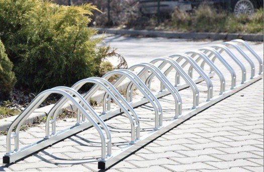 Tinka visų tipų ir dydžių dviračiams (išskyrus dviračius su diskiniais stabdžiais). Galimybė stovą pritvirtinti prie žemės.