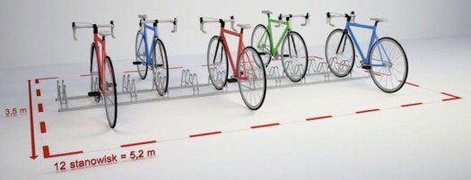 optimalus pozicijų atstumas (42 cm) leidžia patogiai ir saugiai pastatyti dviračius, nepaisant jų dydžio ir tipo