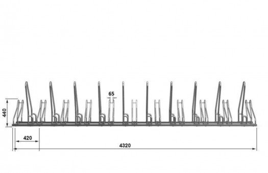 optimalus pozicijų atstumas (42 cm) leidžia saugiai pastatyti dviračius, nepaisant jų dydžio ir tipo
