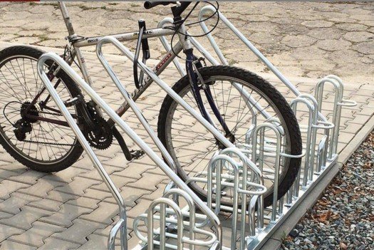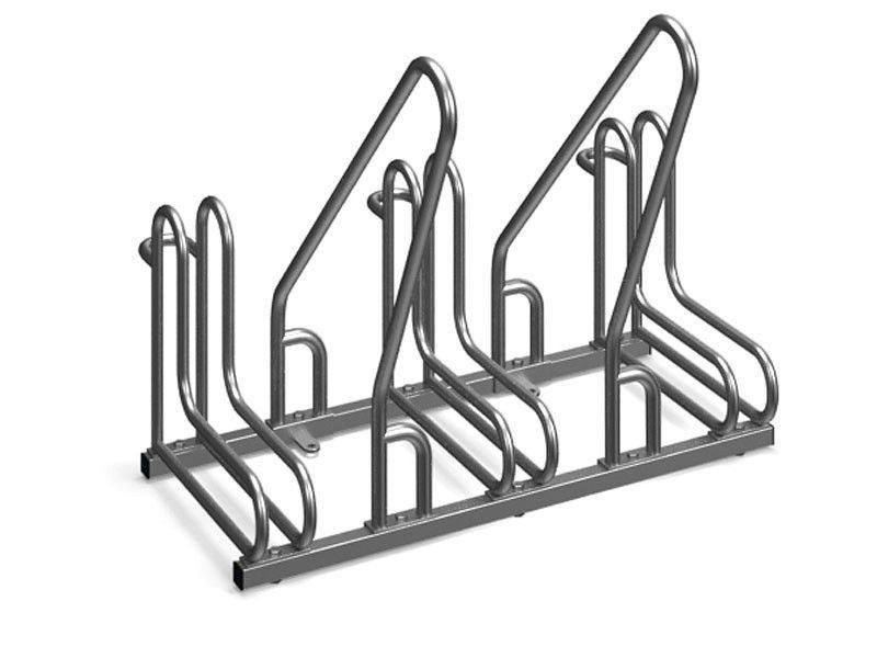 Dviračių stovas su papildomais atitvarais leidžia patogiai ir lengvai pritvirtinti dviračius prie rėmo, bet kokio tipo dviračio užraktu. Stovas tinka visų tipų ir dydžių dviračiams, įskaitant turinčius diskinius stabdžius.