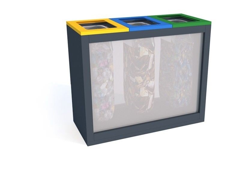 Satis III atliekų rūšiavimo dėžė, susidedanti iš 3 atliekų rūšiavimo konteinerių, kurių kiekvieno talpa 60 litrų. Galimi įvairūs spalvų variantai. Pagaminta iš 1 mm lakštinio metalo ir 5 mm tvirto polikarbonato, kuris sudaro krepšelio priekį. Galimybė pasirinkti krepšelio spalvą pagal RAL paletę. Skirta naudojimui viduje.