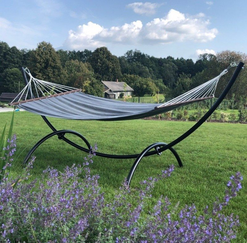 Sodo hamakas puikiai tinka kasdieniam poilsiui po atviru dangumi. Parko hamakas gali būti dviejų konstrukcijų: nerūdijančio plieno arba cinkuotas ir dažytas.