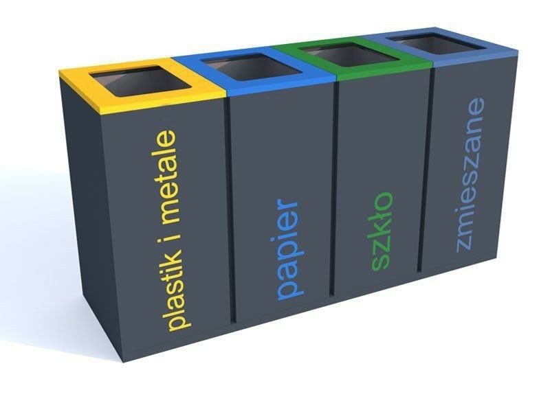 Satis IV atliekų rūšiavimo dėžė, susidedanti iš 4 atliekų rūšiavimo konteinerių, kurių kiekvieno talpa 100 litrų.