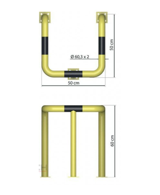 UR-3 su papildoma koja, sustiprintai apsaugai, naudojami sienoms, stulpams ir pramoninei įrangai apsaugoti. Pagaminta iš storo vamzdžio Ø 60,3 x 2mm . Pagal pageidavimą gaminame iš vamzdžio Ø 76,1 x 2 mm . Galimi cinkuoti, cinkuoti ir dažyti variantai. Platus dydžių pasirinkimas - galimybė pagaminti pagal duotus išmatavimus.
