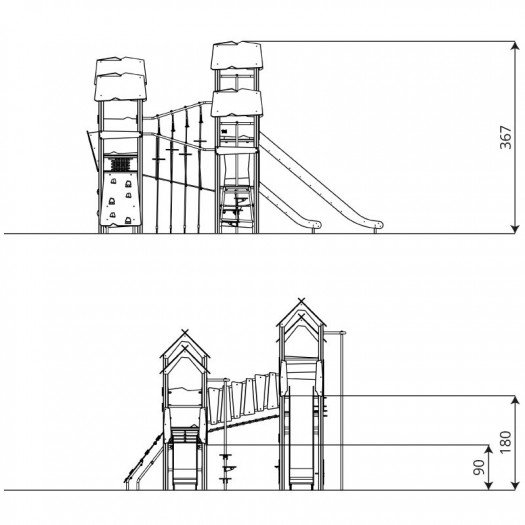 Platformos ir laipiojimo sienelės pagamintos iš patvarios neslidžios ir vandeniui atsparios faneros arba HPL plokštės;