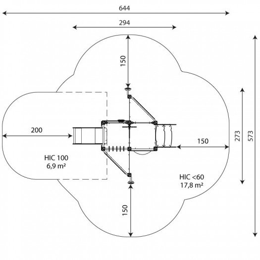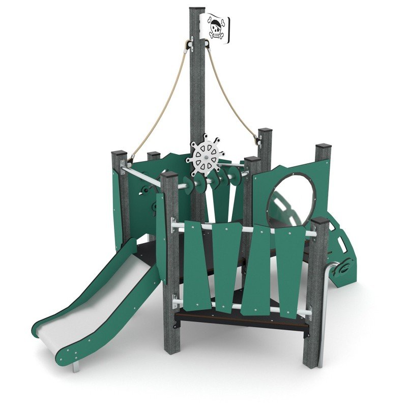 Konstrukcija sukurta iš perdirbtų, drėgmei ir temperatūrai atsparių medžiagų. Naudojamos HDPE plokštės ir polipropileno lynai su nerūdijančio plieno jungtimis. Tinka viešosioms vaikų žaidimų aikštelėms, pritaikyta vaikams su negalia ir atitinka EN 1176-1:2017+A1:2023 standartą. Suteikiamos ilgametės garantijos. Užtikrintas saugumas, nėra aštrių briaunų ar pavojingų angų, apsaugota nuo pirštų įstrigimo. Montavimas ant lygaus paviršiaus, 80/70/60 cm gylyje