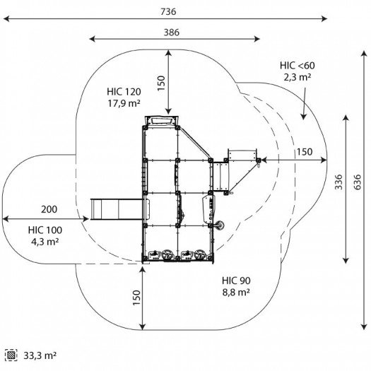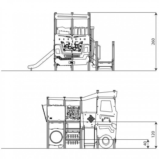 Vaikų žaidimų aikštelių įranga, pagaminta iš perdirbtos, drėgmei ir šalčiui atsparios kompozitinės medžiagos. Konstrukcijoje naudojamos neslystančios HPL plokštės, cinkuoto ir dažyto plieno platformos bei polipropileno dangteliai. Saugūs varžtai yra padengti plastiku. Įranga skirta viešosioms žaidimų aikštelėms, turi atitikties sertifikatą ir atitinka EN 1176-1:2017+A1:2023 standartą.