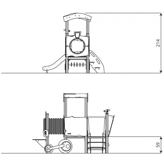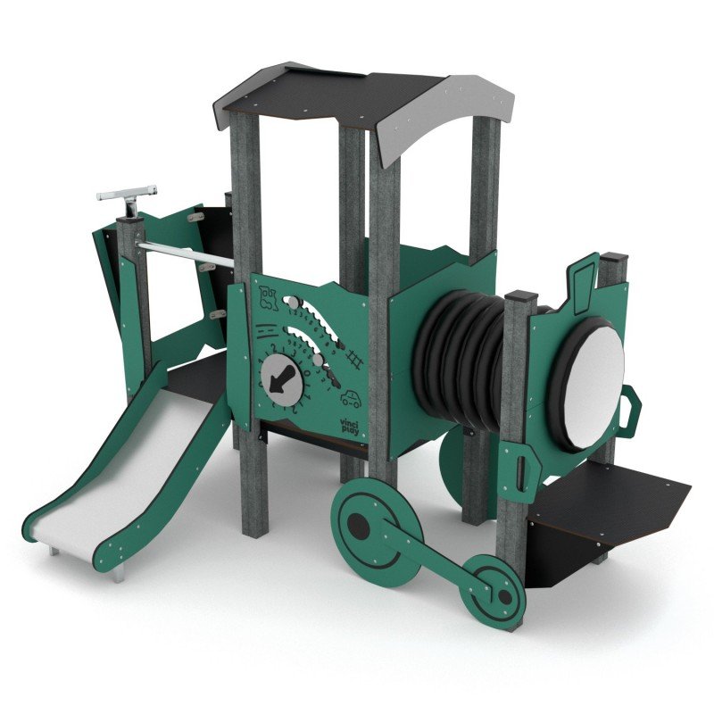 Konstrukcija pagaminta iš patvarios, drėgmei ir šalčiui atsparios perdirbtos kompozitinės medžiagos. Nerūdijančio plieno varžtai yra apsaugoti plastikiniais dangteliais. Užtikrintas saugumas - nėra aštrių briaunų ar angų, kurios galėtų kelti pavojų. Tinka viešosioms vaikų žaidimų aikštelėms, pritaikyta neįgaliesiems ir atitinka EN 1176-1:2017 standartą. Suteikiamos ilgametės garantijos.