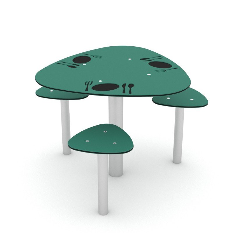 Stalviršis ir sėdynės iš perdirbtų HDPE plokščių, atsparių oro sąlygoms;