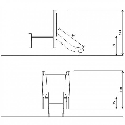 Čiuožykla pagaminta iš nerūdijančio plieno,čiuožyklos šonai pagaminti iš perdirbtos HDPE plokštės, atsparios oro sąlygoms;