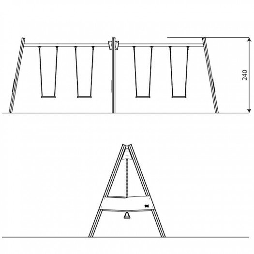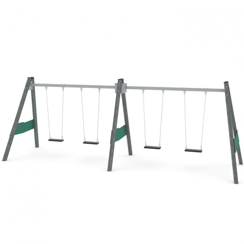 Patvari ir atspari konstrukcija, pagaminta iš karštai cinkuotų, milteliniu būdu dažytų nerūdijančio plieno elementų ir oro sąlygoms atsparių perdirbtų HDPE plokščių. Saugios sėdynės ir kalibruotos nerūdijančio plieno grandinės apsaugo pirštus nuo įstrigimo, o varžtai yra uždengti plastikiniais dangteliais. Tinka viešosioms žaidimų aikštelėms. Konstrukcija saugi, nėra aštrių briaunų, sertifikuota viešajam naudojimui ir atitinka EN 1176-1:2017+A1:2023 standartą.