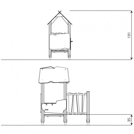 Konstrukcija pagaminta iš aukščiausios kokybės laminuotos, impregnuotos ir dvigubai dengtos 90 x 90 mm pušies medienos. Metalinės kojos, pagamintos iš karštai cinkuoto plieno, apsaugo medieną nuo puvimo ir prailgina gaminio tarnavimo laiką. Įranga skirta viešosioms žaidimų aikštelėms. Užtikrintas saugumas – nėra aštrių briaunų ar pavojingų angų, apsaugota nuo pirštų įstrigimo. Montavimas ant lygaus paviršiaus, 80/70/60 cm gylyje. Produktas sertifikuotas pagal EN 1176-1:2017+A1:2023 standartą. Suteikiama garantija.