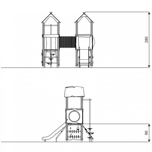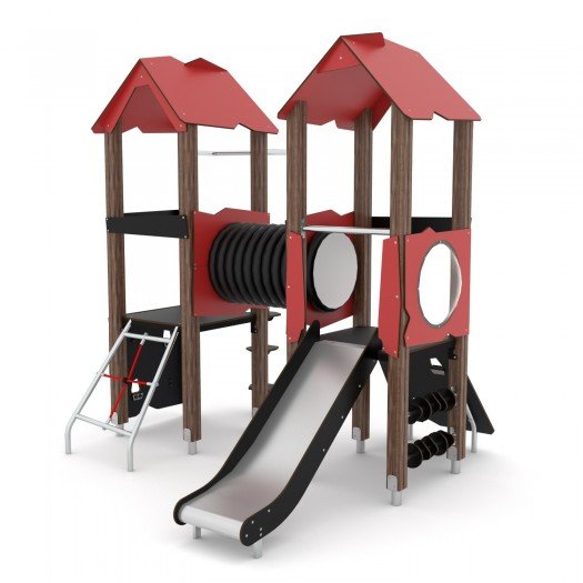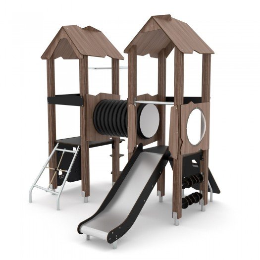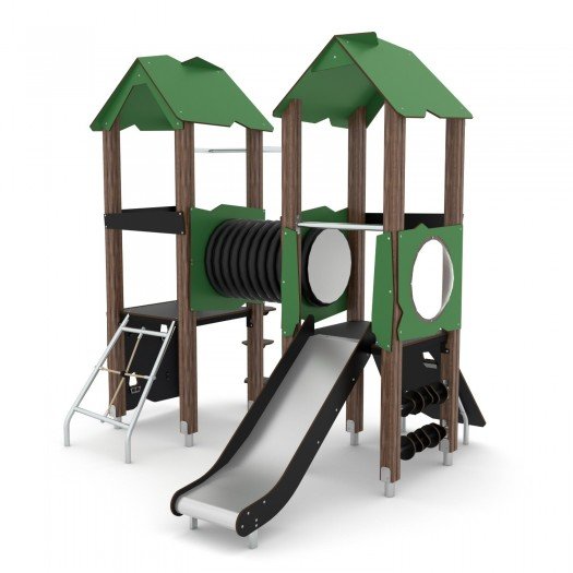 Konstrukcija pagaminta iš aukščiausios kokybės laminuotos, impregnuotos ir dvigubai dengtos 90 x 90 mm pušies medienos. Metalinės kojos, pagamintos iš karštai cinkuoto plieno, apsaugo medieną nuo puvimo ir prailgina gaminio tarnavimo laiką. Įranga skirta viešosioms žaidimų aikštelėms. Užtikrintas saugumas – nėra aštrių briaunų ar pavojingų angų, apsaugota nuo pirštų įstrigimo. Montavimas ant lygaus paviršiaus, 80/70/60 cm gylyje. Produktas sertifikuotas pagal EN 1176-1:2017+A1:2023 standartą. Suteikiama garantija.