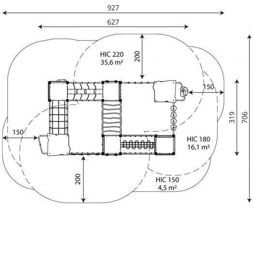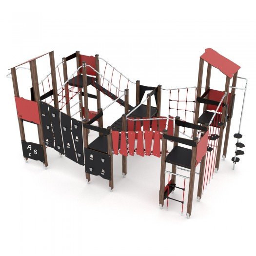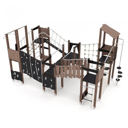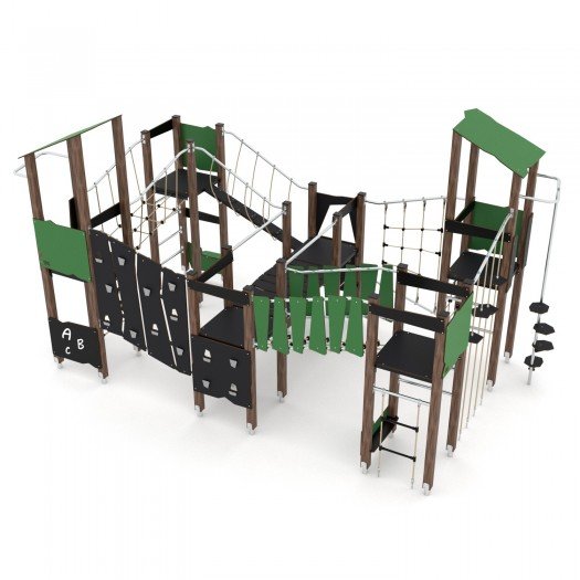 Aukštos kokybės žaidimų įranga, pagaminta iš laminuotos ir impregnuotos pušies medienos bei nerūdijančio plieno komponentų, su patvariais, oro sąlygoms atspariais HDPE ir HPL elementais. Skirta vaikams nuo 3 iki 14 metų, pritaikyta ir vaikams su negalia. Konstrukcija yra saugi – be aštrių briaunų ar pavojingų angų, tinkama naudoti viešosiose žaidimų aikštelėse. Įrangai suteikiama iki 30 metų garantija, priklausomai nuo komponentų tipo. Produktas sertifikuotas pagal EN 1176-1:2017+A1:2023 standartą.