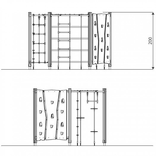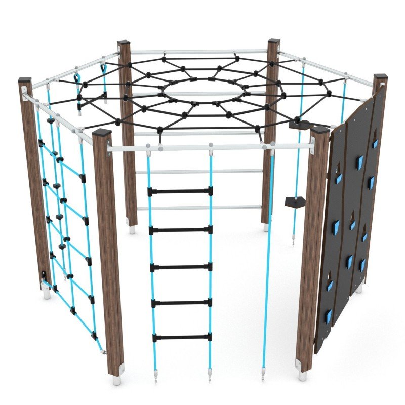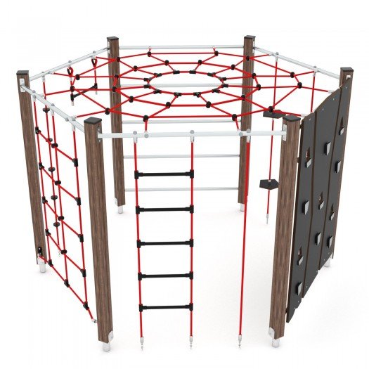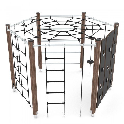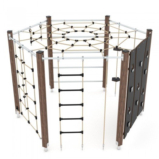 Aukštos kokybės laminuota ir impregnuota medinė konstrukcija su su cinkuotomis metalinėmis kojomis, apsaugančiomis nuo puvimo. Tinka viešosioms žaidimų aikštelėms. Skirta vaikams nuo 3 iki 14 metų. Užtikrintas saugumas, nėra aštrių briaunų ar pavojingų angų, apsaugota nuo pirštų įstrigimo. Montavimas ant lygaus paviršiaus, 80/70/60 cm gylyje. Sertifikuota pagal saugumo standartą EN 1176-1:2017+A1:2023. Suteikiama garantija pagal medžiagų ir komponentų tipą.