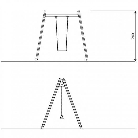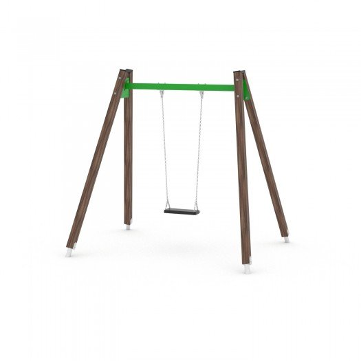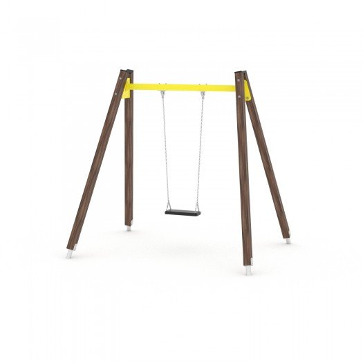 Medinės žaidimų aikštelių sūpynės, pagamintos iš aukštos kokybės impregnuotos ir apsaugotos pušies medienos, su tvirtomis nerūdijančio plieno konstrukcijomis. Sertifikuotos saugios sėdynės ir nerūdijančio plieno jungtys. Įranga skirta viešosioms žaidimų aikštelėms ir pritaikyta vaikams su negalia. Konstrukcijoje nėra aštrių briaunų ar angų. Aikštelės montavimo aukštis – iki 130 cm. Visi komponentai atitinka EN 1176-1:2017+A1:2023 standartą. Suteikiama garantija pagal medžiagų ir komponentų tipą.