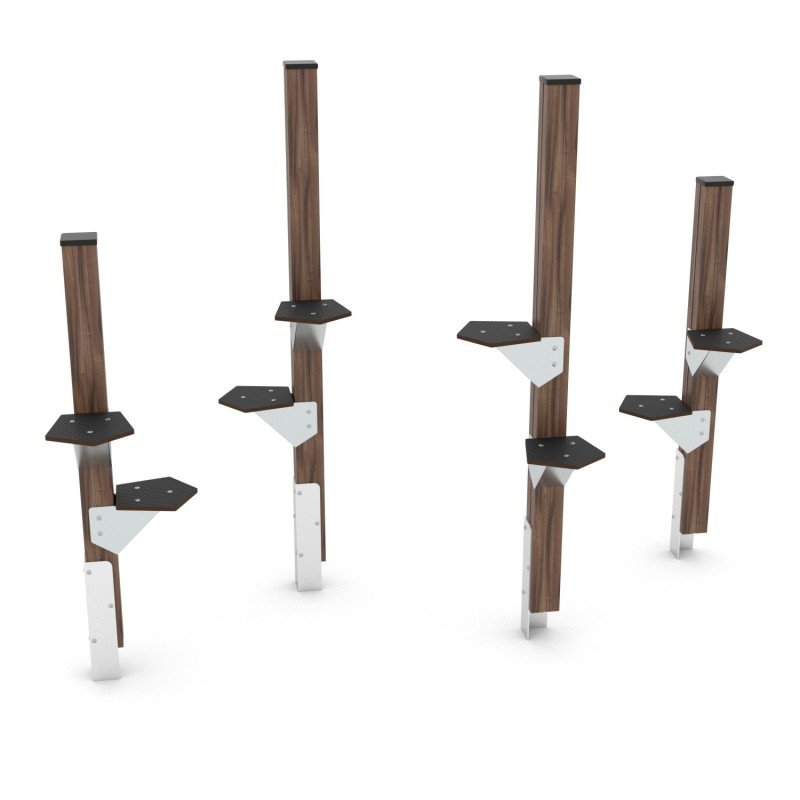 Konstrukcija pagaminta iš aukščiausios kokybės laminuotos, impregnuotos ir dvigubai dengtos 90 x 90 mm pušies medienos. Metalinės kojos, pagamintos iš karštai cinkuoto plieno, apsaugoti medieną nuo puvimo ir prailginti gaminio tarnavimo laiką. Įranga skirta viešosioms žaidimų aikštelėms ir atitinka EN 1176-1:2017+A1:2023 standartą. Užtikrintas saugumas, nėra aštrių briaunų ar pavojingų angų, apsaugota nuo pirštų įstrigimo. Montavimas ant lygaus paviršiaus, 80/70/60 cm gylyje.