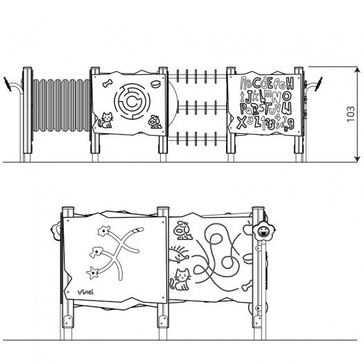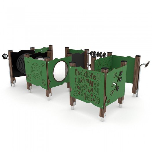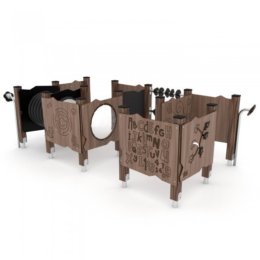 Aukštos kokybės medinė žaidimų aikštelės įranga, pagaminta iš oro sąlygoms atsparių medžiagų. Konstrukcija pagaminta iš laminuotos ir impregnuotos pušies medienos su cinkuotomis metalinėmis kojomis, užtikrinančiomis ilgaamžiškumą. Įranga pritaikyta vaikams su negalia, saugi ir atitinka EN 1176-1:2017 standartą. Tinka viešosioms erdvėms, sertifikuota akredituotoje įstaigoje.