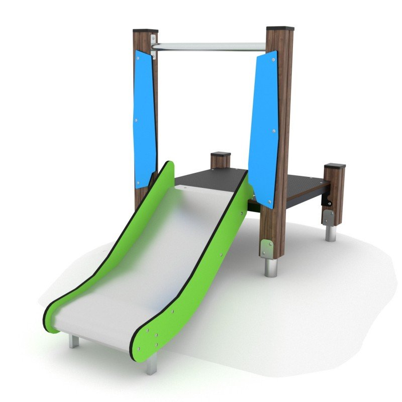 Aukštos kokybės žaidimų įranga, pagaminta iš laminuotos, impregnuotos pušies medienos su nerūdijančio plieno čiuožykla. Pritaikyta viešosioms žaidimų aikštelėms. Konstrukcija atspari oro sąlygoms, apsaugota nuo puvimo ir ilgalaikio dėvėjimosi. Tinka vaikams iki 14 metų, turi sertifikatus bei atitikties deklaracijas. Montavimas ant lygaus paviršiaus.