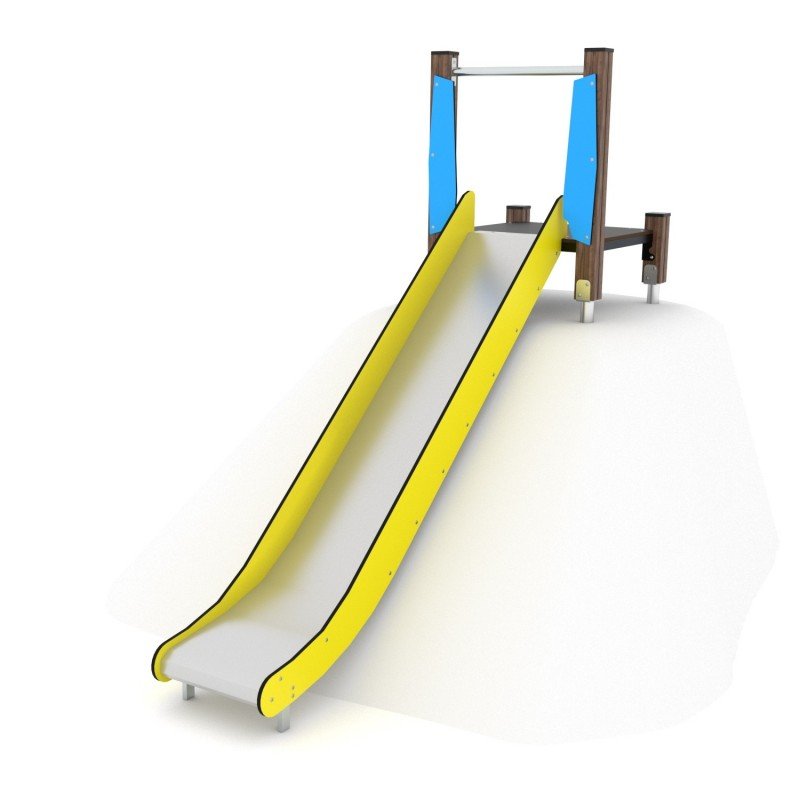Aukštos kokybės žaidimų įranga, pagaminta iš laminuotos, impregnuotos pušies medienos su nerūdijančio plieno čiuožykla. Pritaikyta viešosioms žaidimų aikštelėms. Konstrukcija atspari oro sąlygoms, apsaugota nuo puvimo ir ilgalaikio dėvėjimosi. Tinka vaikams iki 14 metų, turi sertifikatus bei atitikties deklaracijas. Montavimas ant lygaus paviršiaus.
