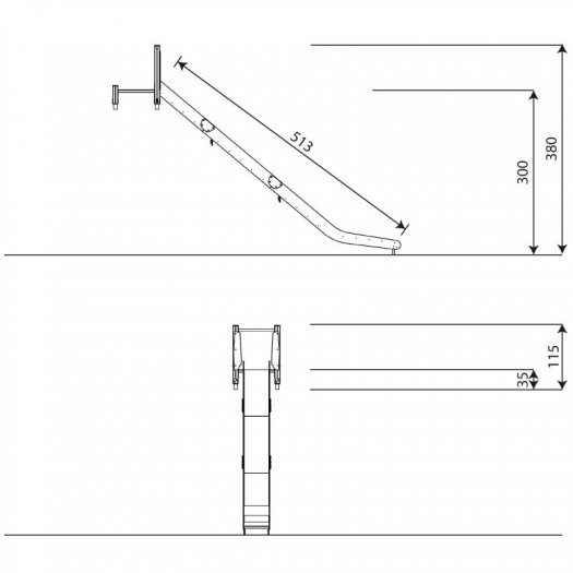 Aukštos kokybės žaidimų įranga, pagaminta iš laminuotos, impregnuotos pušies medienos su nerūdijančio plieno čiuožykla. Pritaikyta viešosioms žaidimų aikštelėms. Konstrukcija atspari oro sąlygoms, apsaugota nuo puvimo ir ilgalaikio dėvėjimosi. Tinka vaikams iki 14 metų, turi sertifikatus bei atitikties deklaracijas. Montavimas ant lygaus paviršiaus.