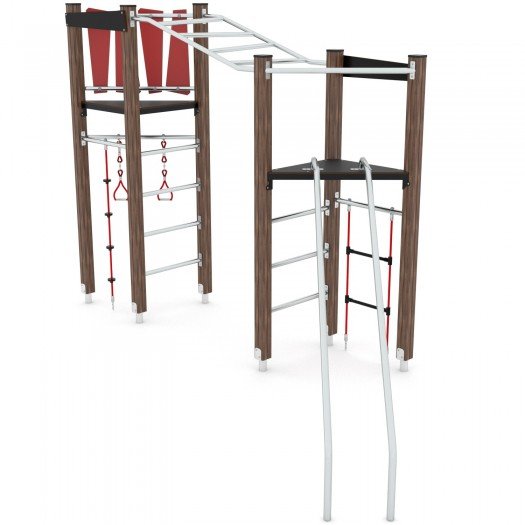Konstrukcija pagaminta iš aukščiausios kokybės laminuotos, impregnuotos ir dvigubai dengtos 90 x 90 mm pušies medienos. Metalinės kojos, pagamintos iš karštai cinkuoto plieno, apsaugo medieną nuo puvimo ir prailgina gaminio tarnavimo laiką. Įranga skirta viešosioms žaidimų aikštelėms. Užtikrintas saugumas – nėra aštrių briaunų ar pavojingų angų, apsaugo nuo pirštų įstrigimo. Montavimas ant lygaus paviršiaus, 80/70/60 cm gylyje. Produktas sertifikuotas pagal EN 1176-1:2017+A1:2023 standartą. Suteikiama garantija.