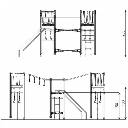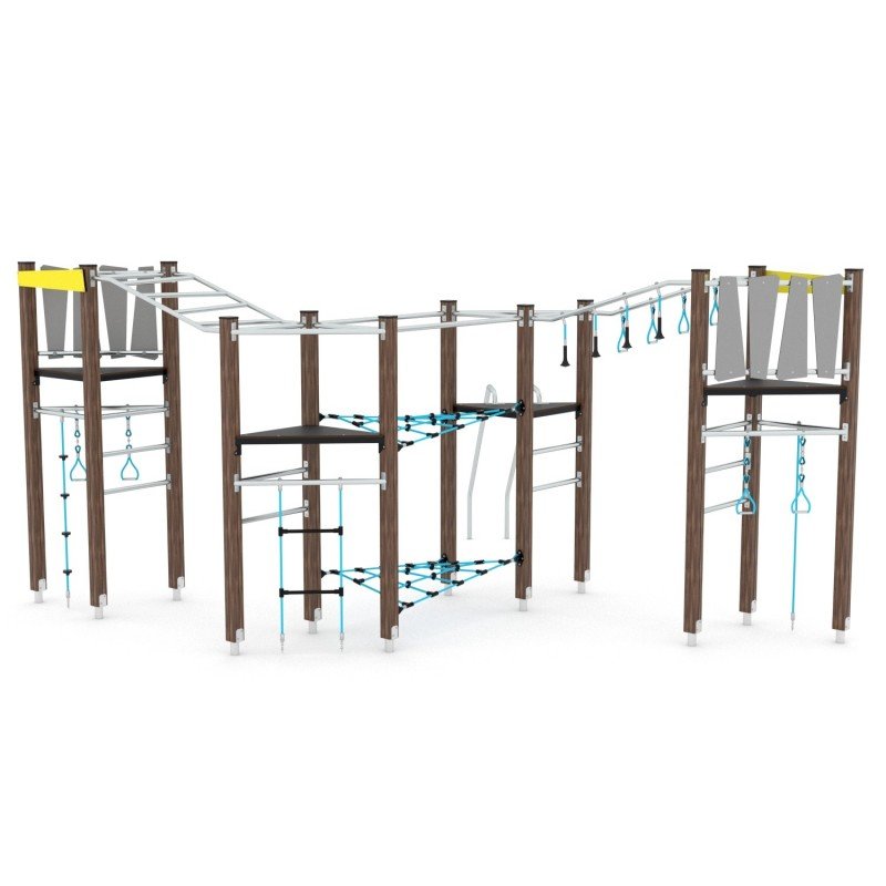 Konstrukcija pagaminta iš aukščiausios kokybės laminuotos, impregnuotos ir dvigubai dengtos 90 x 90 mm pušies medienos. Metalinės kojos, pagamintos iš karštai cinkuoto plieno, apsaugoti medieną nuo puvimo ir prailginti gaminio tarnavimo laiką. Įranga skirta viešosioms žaidimų aikštelėms. Užtikrintas saugumas, nėra aštrių briaunų ar pavojingų angų, apsaugota nuo pirštų įstrigimo. Montavimas ant lygaus paviršiaus, 80/70/60 cm gylyje. Produktas sertifikuotas pagal EN 1176-1:2017+A1:2023 standartą. Suteikiama garantija.