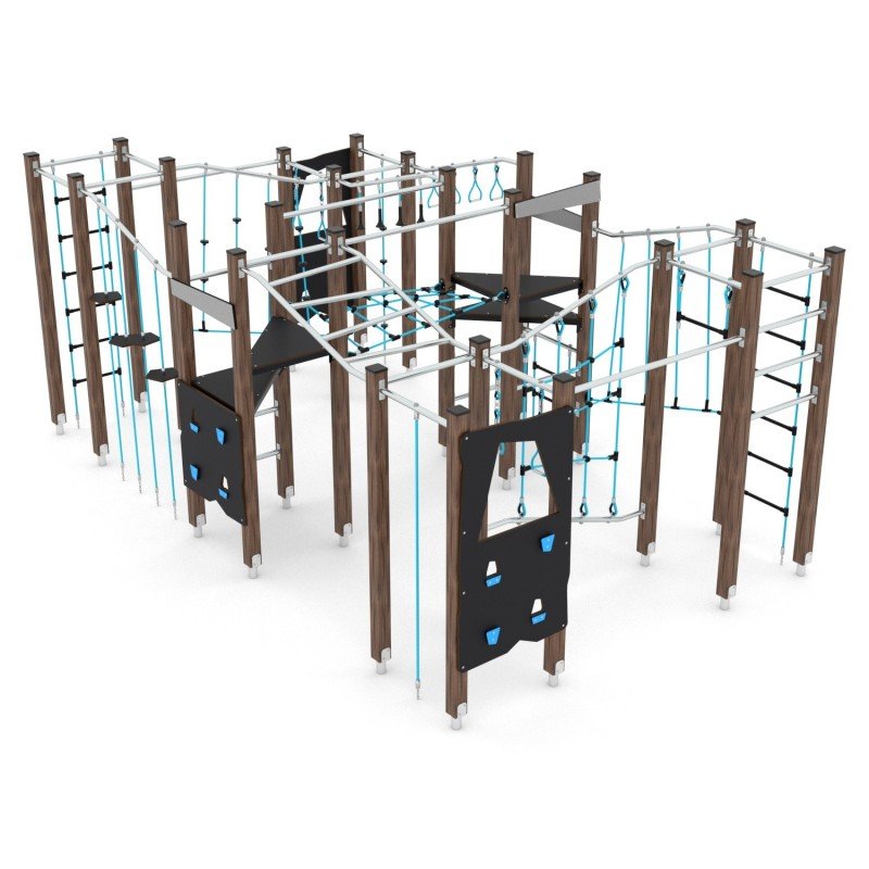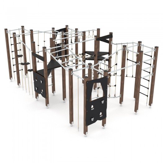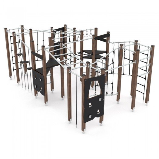 Aukštos kokybės medinė žaidimų aikštelės įranga, pagaminta iš oro sąlygoms atsparių medžiagų. Konstrukcija pagaminta iš laminuotos ir impregnuotos pušies medienos su cinkuotomis metalinėmis kojomis, užtikrinančiomis ilgaamžiškumą. Įranga pritaikyta vaikams su negalia, saugi ir atitinka EN 1176-1:2017+A1:2023 standartą. Tinka viešosioms erdvėms, sertifikuota akredituotoje įstaigoje.