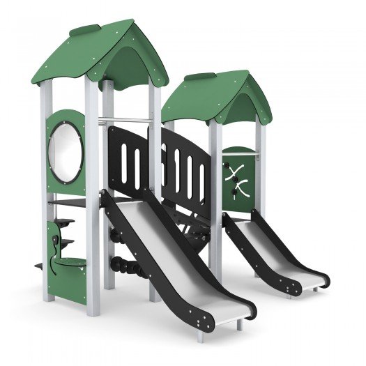 Aukštos kokybės vaikų žaidimų įranga su patvaria cinkuota ir milteliniu būdu dengta plieno konstrukcija, HDPE bei HPL elementais. Konstrukcija yra saugi – nėra aštrių briaunų ar pavojingų angų, tinkama naudoti viešosiose žaidimų aikštelėse. Įrangai suteikiama iki 30 metų garantija, priklausomai nuo komponentų tipo. Produktas sertifikuotas pagal EN 1176-1:2017+A1:2023 standartą.