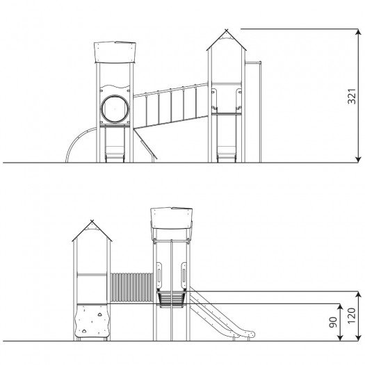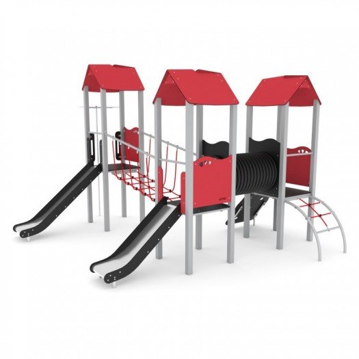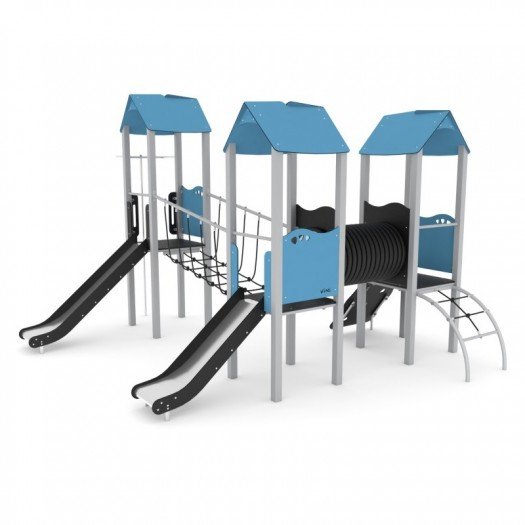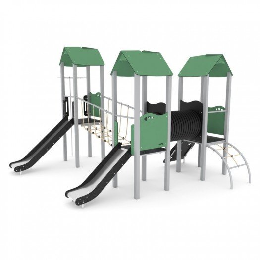 Aukštos kokybės vaikų žaidimų įranga su patvaria cinkuota ir milteliniu būdu dengta plieno konstrukcija, HDPE bei HPL plokštėmis. Konstrukcija yra saugi – nėra aštrių briaunų ar pavojingų angų, tinkama naudoti viešosiose žaidimų aikštelėse. Įrangai suteikiama iki 30 metų garantija, priklausomai nuo komponentų tipo. Produktas sertifikuotas pagal EN 1176-1:2017+A1:2023 standartą.