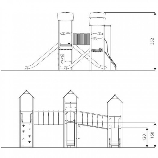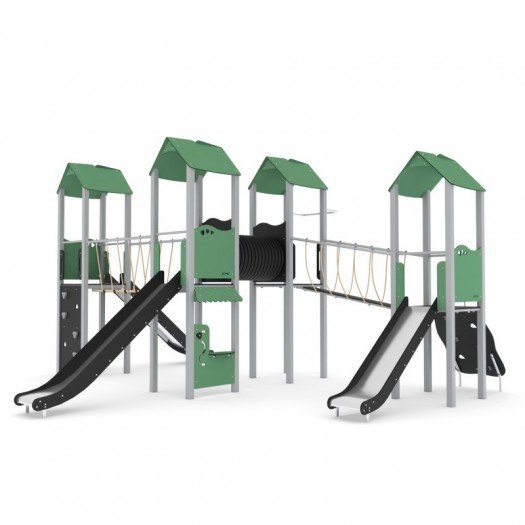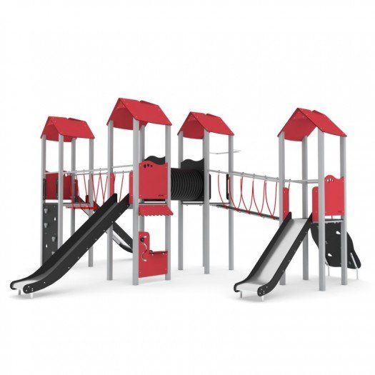 Aukštos kokybės vaikų žaidimų įranga su patvaria cinkuota ir milteliniu būdu dengta plieno konstrukcija, HDPE bei HPL plokštėmis. Konstrukcija yra saugi – nėra aštrių briaunų ar pavojingų angų, tinkama naudoti viešosiose žaidimų aikštelėse. Įrangai suteikiama iki 30 metų garantija, priklausomai nuo komponentų tipo. Produktas sertifikuotas pagal EN 1176-1:2017+A1:2023 standartą.