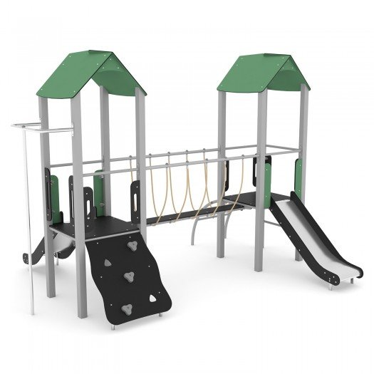Aukštos kokybės vaikų žaidimų įranga su patvaria cinkuota ir milteliniu būdu dengta plieno konstrukcija, HDPE bei HPL plokštėmis. Konstrukcija yra saugi – nėra aštrių briaunų ar pavojingų angų, tinkama naudoti viešosiose žaidimų aikštelėse. Įrangai suteikiama iki 30 metų garantija, priklausomai nuo komponentų tipo. Produktas sertifikuotas pagal EN 1176-1:2017+A1:2023 standartą.