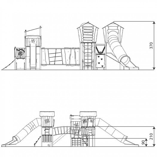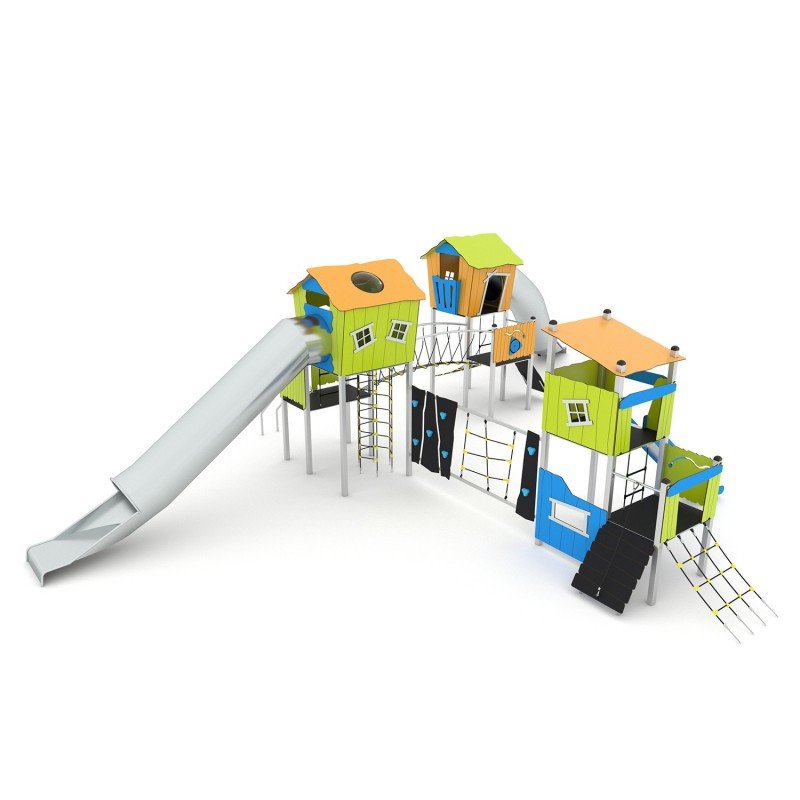 Aukštos kokybės žaidimų kompleksas su nerūdijančio plieno konstrukcija ir patvariais HDPE, HPL elementais. Konstrukcija yra saugi – nėra aštrių briaunų ar pavojingų angų, tinkama naudoti viešosiose žaidimų aikštelėse. Įrangai suteikiama garantija, priklausomai nuo komponentų tipo. Produktas sertifikuotas pagal EN 1176-1:2017+A1:2023 standartą.