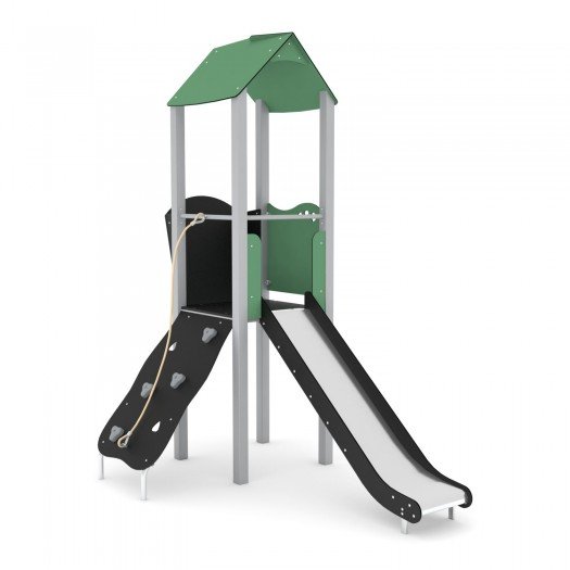 Aukštos kokybės vaikų žaidimų įranga su patvaria cinkuoto plieno konstrukcija, HDPE bei HPL elementais. Konstrukcija yra saugi – nėra aštrių briaunų ar pavojingų angų. Tinkama naudoti viešosiose žaidimų aikštelėse. Įrangai suteikiama iki 30 metų garantija, priklausomai nuo komponentų tipo. Produktas sertifikuotas pagal EN 1176-1:2017+A1:2023 standartą.