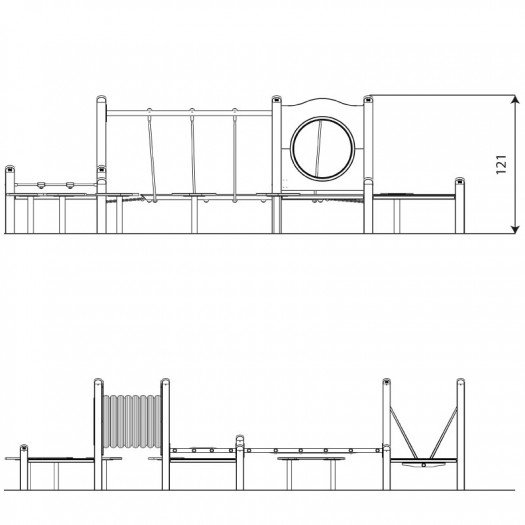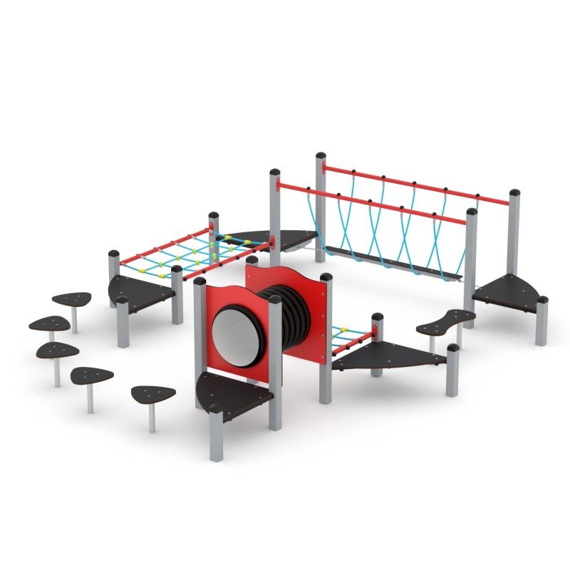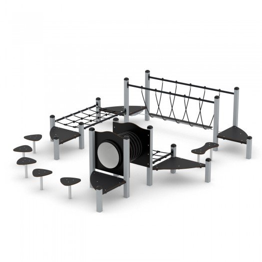 Lauko žaidimų kompleksas su cinkuota ir milteliniu būdu dengta plieno konstrukcija, patvariomis platformomis, HDPE ir HPL plokštėmis. Konstrukcija yra saugi – nėra aštrių briaunų ar pavojingų angų. Tinkama naudoti viešosiose žaidimų aikštelėse. Įrangai suteikiama iki 30 metų garantija, priklausomai nuo komponentų tipo. Produktas sertifikuotas pagal EN 1176-1:2017+A1:2023 standartą.