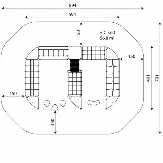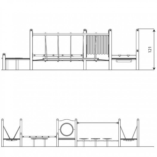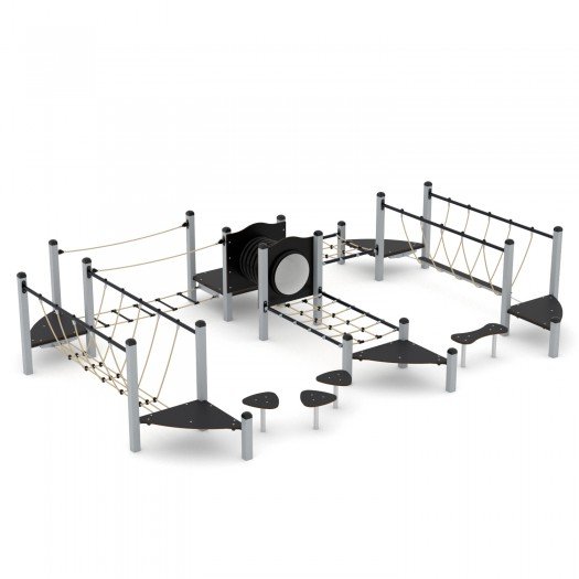 Lauko žaidimų įranga su cinkuota ir milteliniu būdu dengta plieno konstrukcija, patvariomis platformomis, HPL plokštėmis. Konstrukcija yra saugi – nėra aštrių briaunų ar pavojingų angų. Tinkama naudoti viešosiose žaidimų aikštelėse. Įrangai suteikiama iki 30 metų garantija, priklausomai nuo komponentų tipo. Produktas sertifikuotas pagal EN 1176-1:2017+A1:2023 standartą.