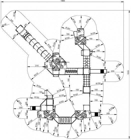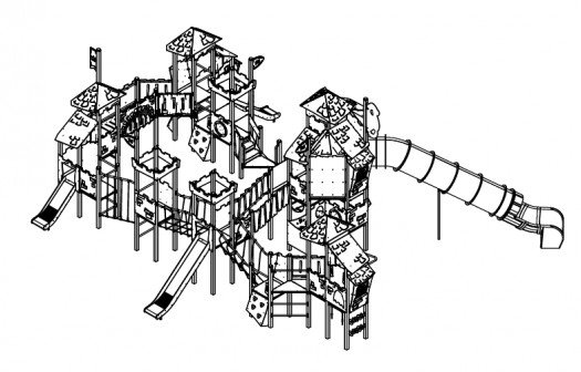 Aukštos kokybės vaikų žaidimų kompleksas su patvaria cinkuota ir milteliniu būdu dengta plieno konstrukcija, HDPE bei HPL plokštėmis. Konstrukcija yra saugi – nėra aštrių briaunų ar pavojingų angų, tinkama naudoti viešosiose žaidimų aikštelėse. Įrangai suteikiama iki 30 metų garantija, priklausomai nuo komponentų tipo. Produktas sertifikuotas pagal EN 1176-1:2017+A1:2023 standartą.