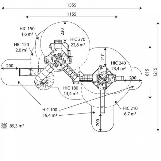 Aukštos kokybės vaikų žaidimų kompleksas su patvaria cinkuota ir milteliniu būdu dengta plieno konstrukcija, HDPE bei HPL plokštėmis. Konstrukcija yra saugi – nėra aštrių briaunų ar pavojingų angų, tinkama naudoti viešosiose žaidimų aikštelėse. Įrangai suteikiama iki 30 metų garantija, priklausomai nuo komponentų tipo. Produktas sertifikuotas pagal EN 1176-1:2017+A1:2023 standartą.