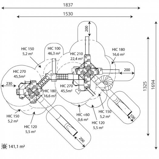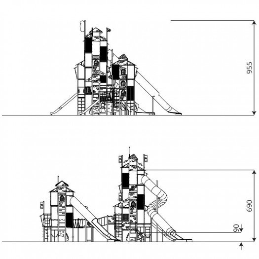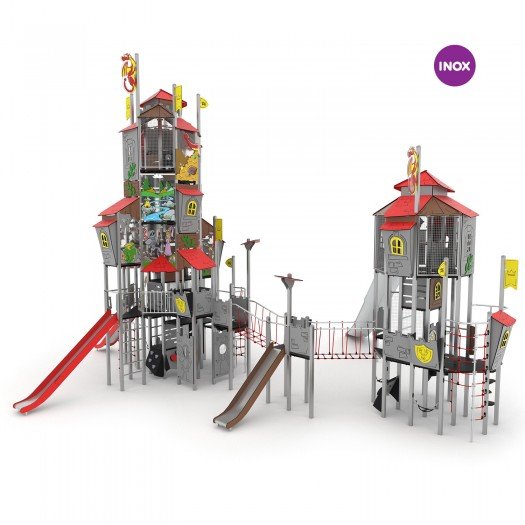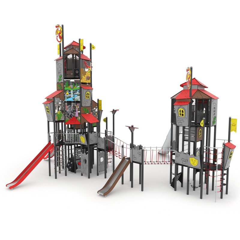 Aukštos kokybės daugiafunkcis vaikų žaidimų kompleksas su patvaria cinkuota ir milteliniu būdu dengta plieno konstrukcija, HDPE bei HPL plokštėmis. Konstrukcija yra saugi – nėra aštrių briaunų ar pavojingų angų, tinkama naudoti viešosiose žaidimų aikštelėse. Įrangai suteikiama iki 30 metų garantija, priklausomai nuo komponentų tipo. Produktas sertifikuotas pagal EN 1176-1:2017+A1:2023 standartą.