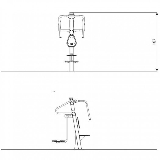 Lauko treniruoklių įranga su cinkuota arba nerūdijančio plieno konstrukcija, patvariomis HDPE ir HPL plokštėmis, atspari oro sąlygoms. Įranga skirta viešosioms lauko aikštelėms. Konstrukcija yra saugi – nėra aštrių briaunų ar angų. Sertifikuota pagal EN 16630:2015 standartą. Suteikiama garantija pagal medžiagų ir komponentų tipą.