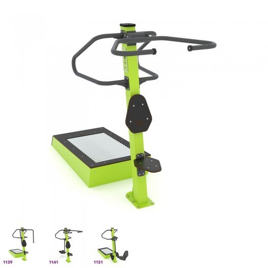 Lauko treniruoklių įranga su cinkuota arba nerūdijančio plieno konstrukcija, patvariomis HDPE ir HPL plokštėmis, atspari oro sąlygoms. Įranga skirta viešosioms lauko aikštelėms. Konstrukcija yra saugi – nėra aštrių briaunų ar angų. Sertifikuota pagal EN 16630:2015 standartą. Suteikiama garantija pagal medžiagų ir komponentų tipą.