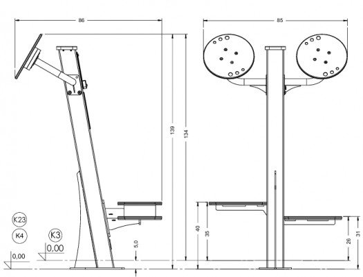 Lauko treniruoklių įranga su cinkuota arba nerūdijančio plieno konstrukcija, patvariomis HDPE ir HPL plokštėmis, atspari oro sąlygoms. Įranga skirta viešosioms lauko aikštelėms. Konstrukcija yra saugi – nėra aštrių briaunų ar angų. Sertifikuota pagal EN 16630:2015 standartą. Suteikiama garantija pagal medžiagų ir komponentų tipą.