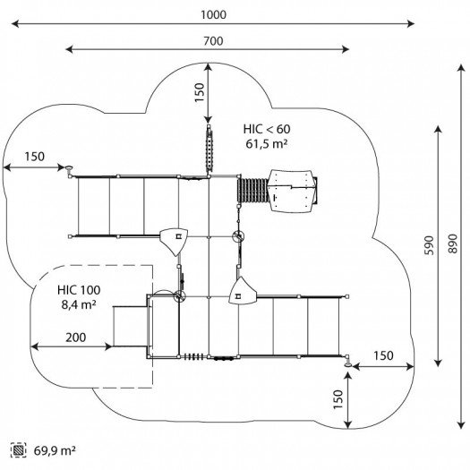 Aukštos kokybės vaikų žaidimų įranga su patvaria cinkuota ir milteliniu būdu dengta plieno konstrukcija, HDPE bei HPL elementais. Konstrukcija yra saugi – nėra aštrių briaunų ar pavojingų angų, tinkama naudoti viešosiose žaidimų aikštelėse. Įrangai suteikiama iki 30 metų garantija, priklausomai nuo komponentų tipo. Produktas sertifikuotas pagal EN 1176-1:2017+A1:2023 standartą.